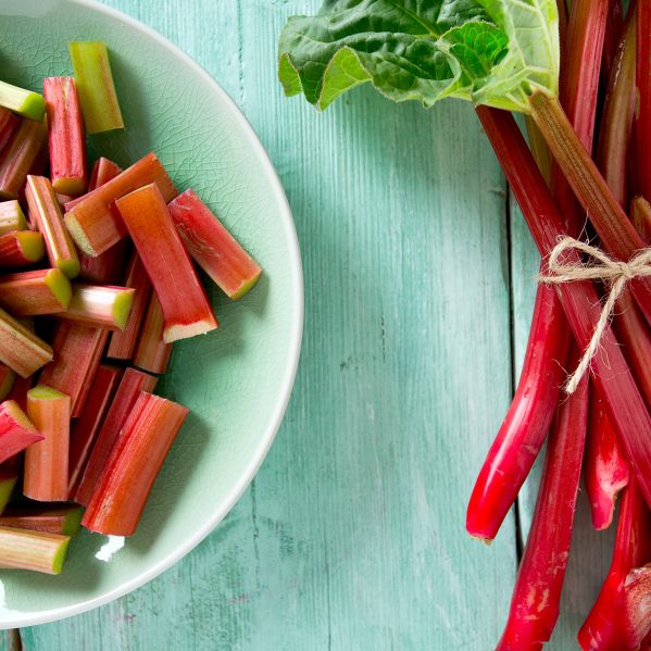 Noch ein paar Fakten rund um die gesunde Pflanze: Wusstet ihr, dass Rhabarber eigentlich kein Obst, sondern ein Gemüse ist und ursprünglich aus China stammt? Das erste Anbaugebiet bei uns waren im 19. Jahrhundert die Hamburger Vierlande. Auch, wenn wir ihn eher als Kompott oder eben beim Backen einsetzen, schmeckt Rhabarber auch in herzhaften Kontexten, wie im Curry, als Ketchup oder als Ravioli-Füllung wirklich gut. Der perfekte Partner an seiner Seite ist übrigens die Erdbeere. Ihr Aroma harmoniert klasse zum Rhabarber. Rhabarber darf niemals roh gegessen werden und verwendet werden in der Küche nur die Stiele, nicht die Blätter. So genug geredet, hier kommt unser neues Lieblings-Rhabarber-Rezept: