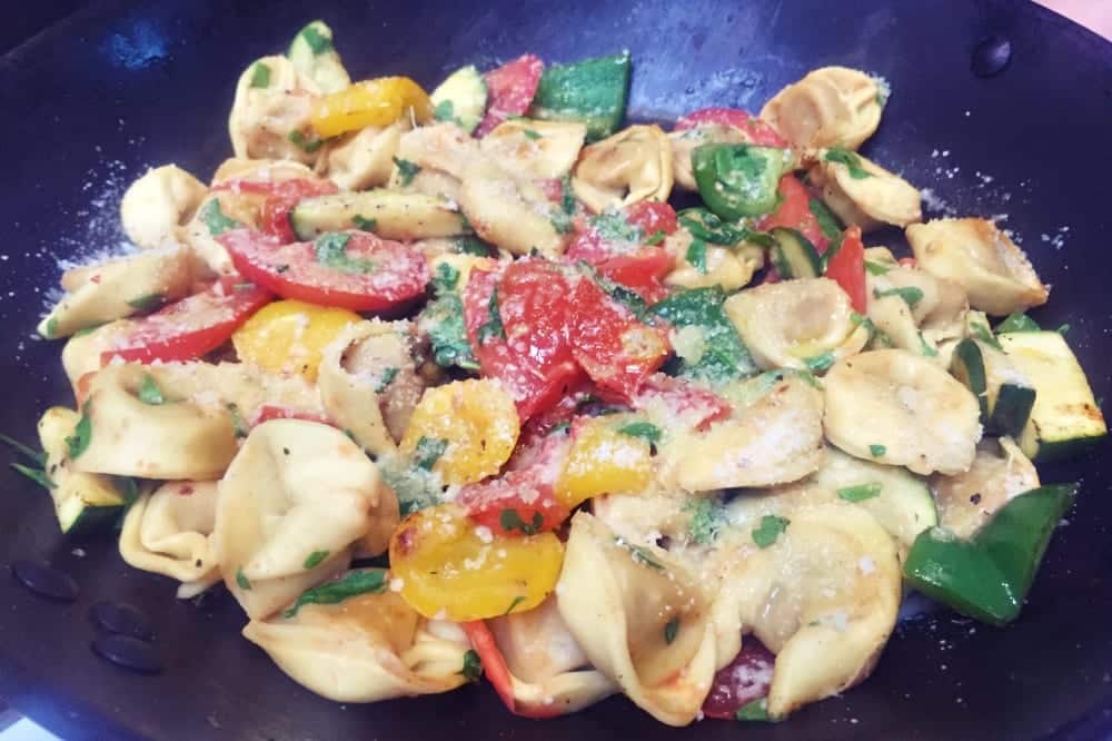 - Gemüsesoße mit den Tortellini vermischen und anrichten.