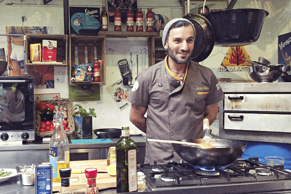Lasst euch anstecken von vollblütiger Kochleidenschaft, Experimentierfreude, Lust auf Essen, italienischer Leichtigkeit, einer ordentlichen Portion Pragmatismus, Improvisationstalent, Charme und Humor. Kochen mit Raffale macht riesig Spaß, rüttelt euch auf, lehrt euch fürs Leben und macht euch für einen kurzen Augenblick selbst zum Süditaliener. Der Funke springt garantiert über. Zwischen wunderschönen alten Vespas, in einer einzigartigen und zugegeben ungewöhnlichen Atmosphäre verbringt ihr ein paar sehr unterhaltsame Stunden, in der ihr ganz viel übers Kochen, alle möglichen Gastro-Geheimnisse, Dos and Don’ts und die Basics der süditalienischen Küche erfahrt. Wer Pizza, Pasta, Vino und Vespas liebt, fühlt sich wie im Paradies!