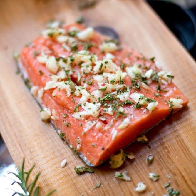 Grillgut marinieren: Fisch, Meeresfrüchte und Gemüse gelingen fantastisch, wenn du sie vorher marinierst. Dabei kannst du deiner Fantasie freien Lauf lassen und die Öl-Mixtur mit Kräutern und Gewürzen pimpen, was das Zeug hält oder ganz simpel halten, um den Eigengeschmack des Produkts nicht zu übertünchen und dem Zedernholzaroma gebührend Raum zu lassen.