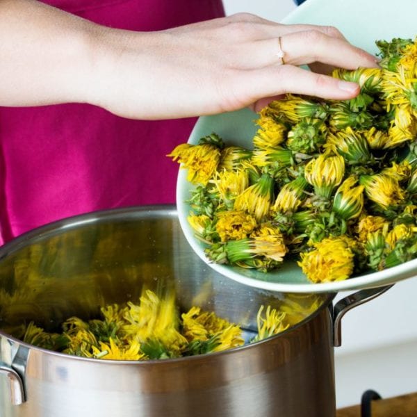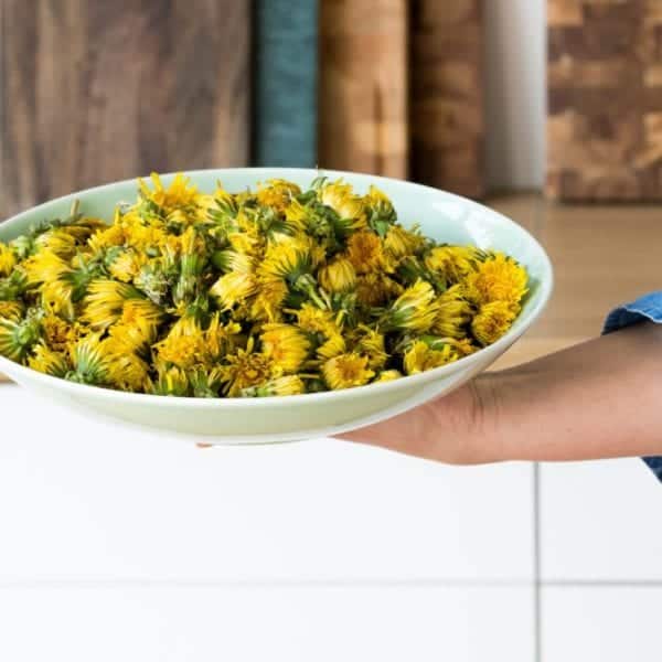 - Löwenzahnblüten kalt waschen und trocknen lassen.