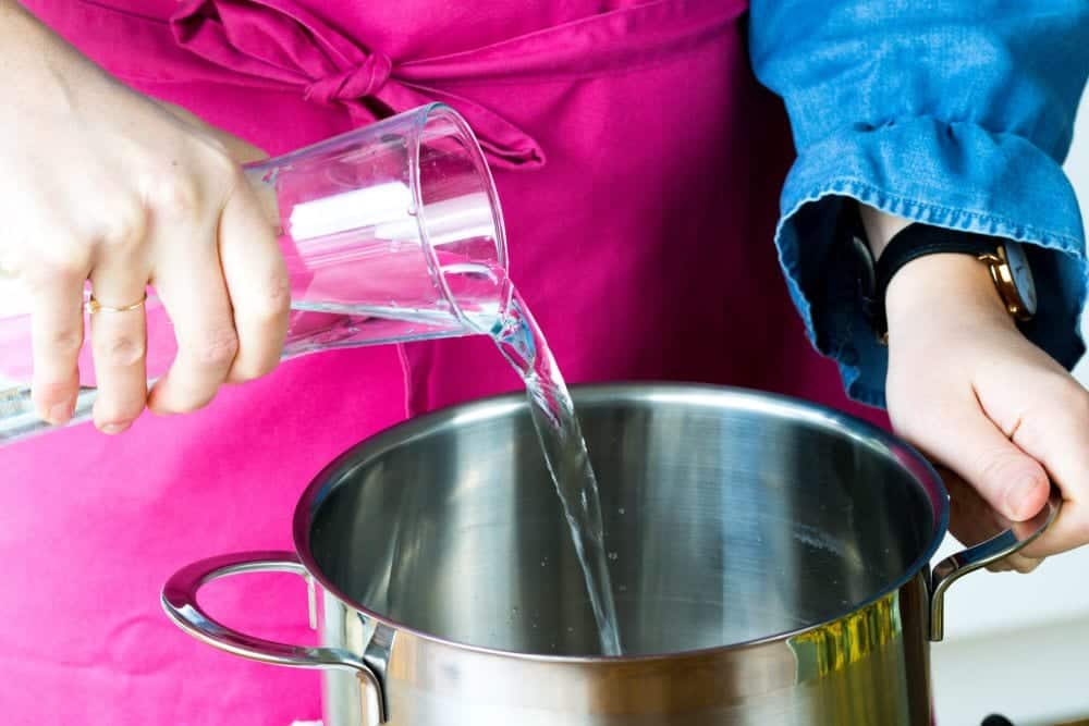 - Die gewaschenen Blüten in einem Topf mit Wasser sprudelnd aufkochen lassen.