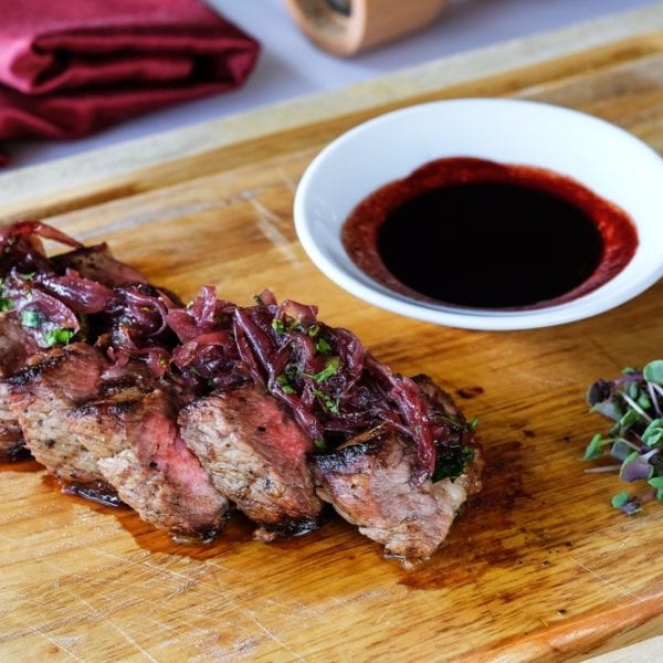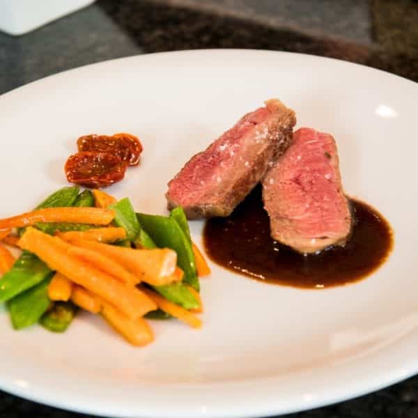 - Zum Schluss abschmecken und eine Prise Zucker oder ein Stück dunkle Schokolade dazugeben. Rotwein-Jus zu einem zarten Stück Fleisch und Gemüse servieren. Fertig!