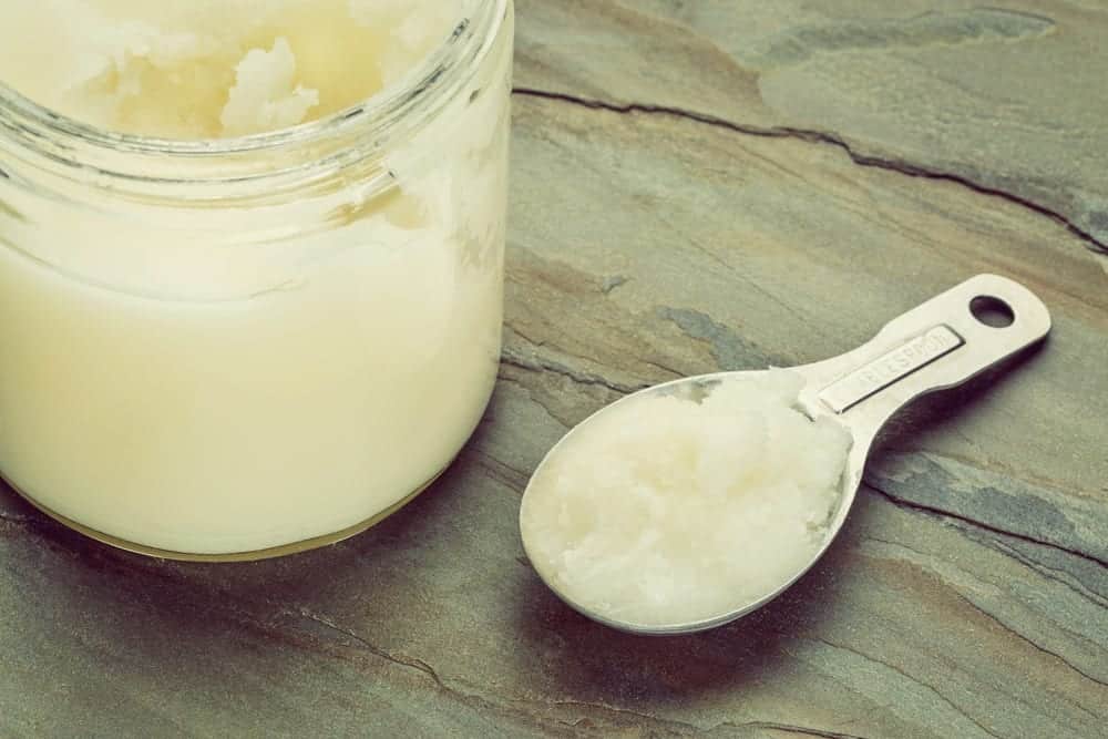 Aussehen und Textur: Bei Temperaturen unter 25 Grad ist Kokosöl fest und weiß, bei Temperaturen darüber wird es klar und flüssig.