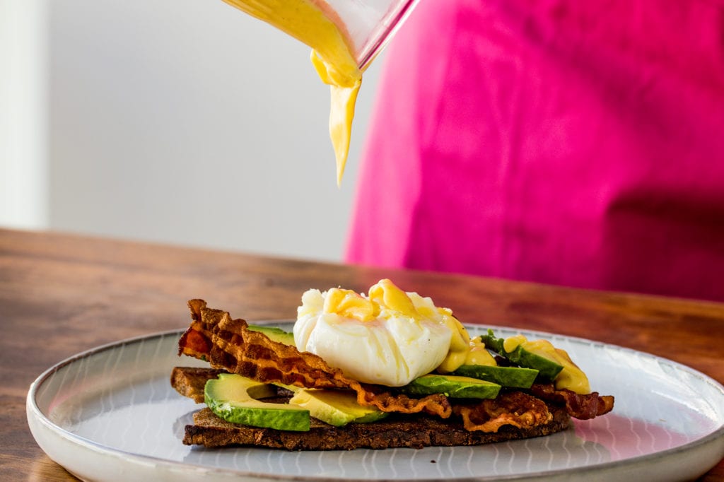 Gehe mit der Zeit und serviere zu Ostern das beliebteste Frühstück überhaupt! Wir haben die klassischen Eggs Benedict ein wenig abgestaubt und mit Avocado und Bacon auf knusprigem Bauernbrot serviert. Natürlich zeigen wir dir in unserem Video, wie du selbst eine Sauce Hollandaise machst. Es ist eigentlich gar nicht so schwer, trotzdem wirst du sicher vor Stolz platzen, wenn dir es zum ersten Mal gelingt, aus der recht flüssigen Masse eine wunderschön cremige Sauce zu rühren. Und lecker ist es obendrein!