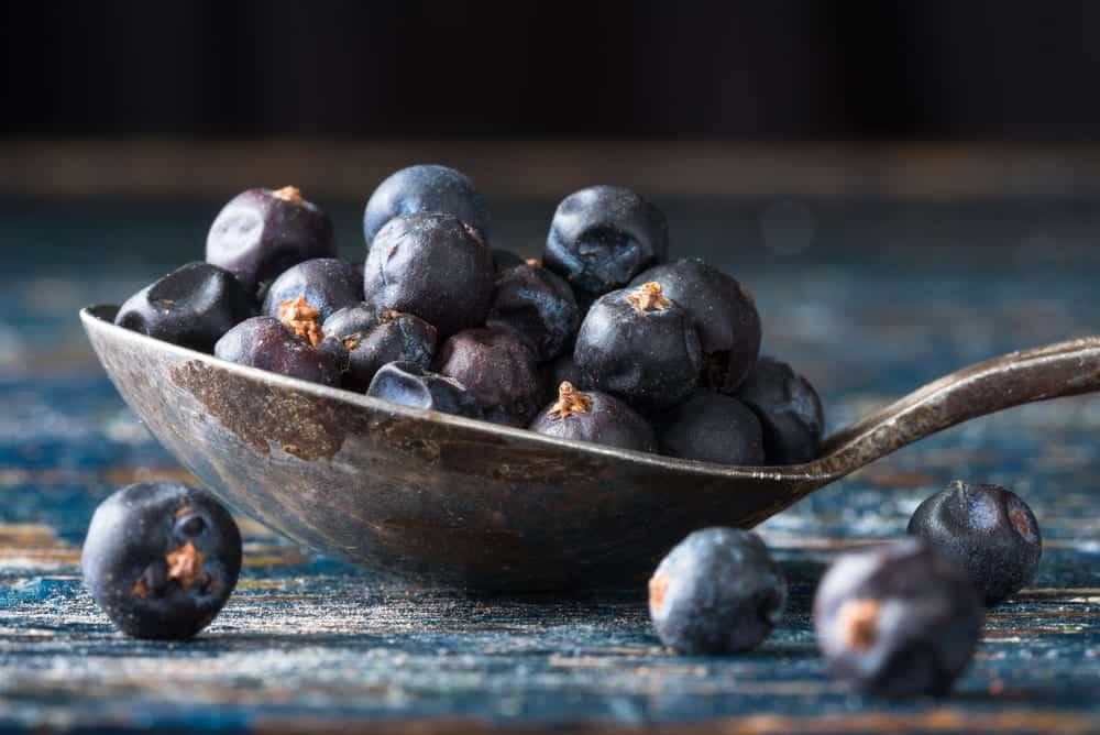 Wacholder schmeckt wie ein Nadelwald duftet und sorgt im Essen für holzige, harzige und blumige, leicht süße Noten, die durchaus auch in eine pfeffrige Richtung gehen. Am besten entfalten die Scheinbeeren ihren kräftiges Aroma, wenn du sie kurz vor der Verwendung nur leicht andrückst. Alternativ kannst du sie auch im Mörser etwas kräftiger zerstoßen. Wenn du Soßen, Suppen oder Marinaden aromatisieren wirst, kannst du die angestoßenen Beeren in ein Aromasäckchen geben und ca. 20 Minuten vor Ende der Garzeit in den Topf packen und kurz vor dem Servieren wieder herausnehmen.