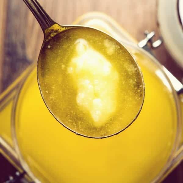 - Ein weiterer positiver Aspekt: Ghee ist sehr lange und das sogar bei Raumtemperatur haltbar. Du kannst es über Wochen bedenkenlos ungekühlt lagern. Butter wird im Gegenzug dazu ungekühlt ranzig. Schließlich wurde es in den warmen Herkunftsländern Indien und Pakistan genau zu dem Zweck der Konservierung hergestellt. Durch die Konzentrierung von Butter zum Butterreinfett konnte das goldene Speisefett ohne Kühlung lange verzehrt werden, ohne dass es verdarb.