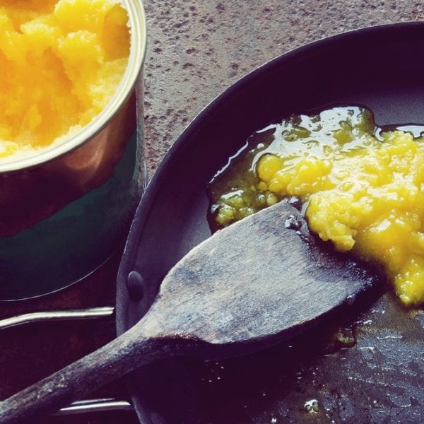 - Wenn kein Dampf mehr aufsteigt, sich kein Schaum mehr bildet, die Butter fast klar und goldgelb ist und sie leicht karamellig duftet, ist dein Ghee fertig.