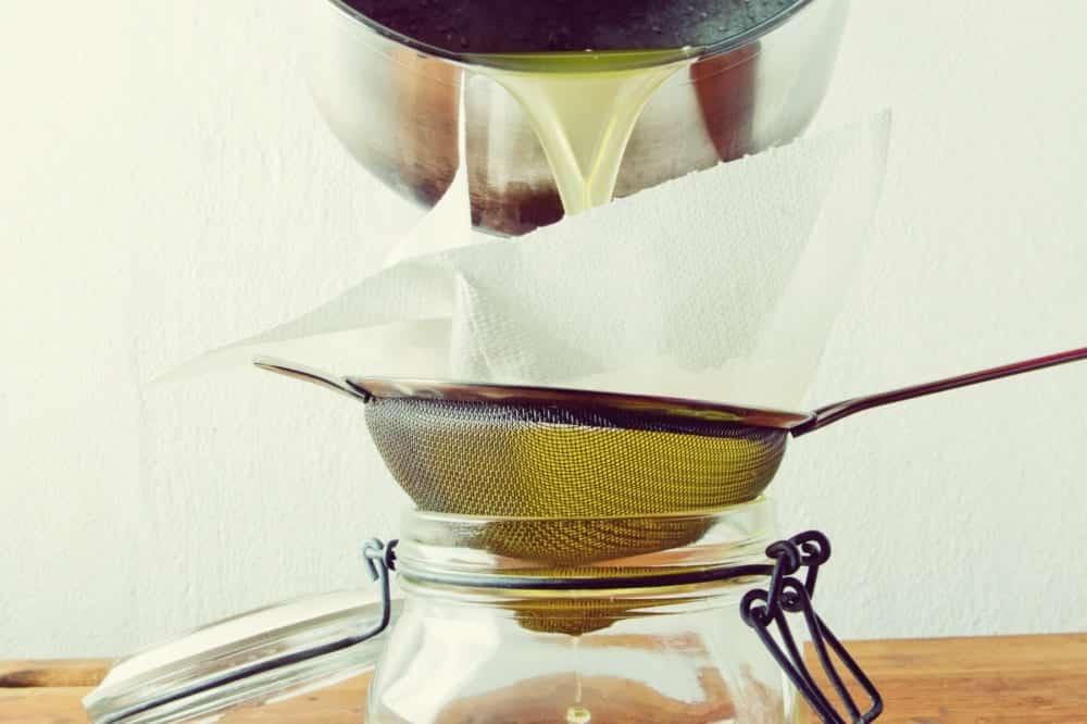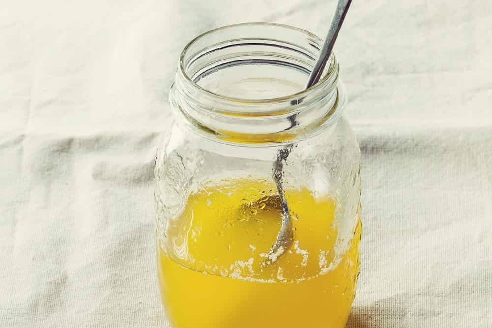 - Das Ghee sollte jetzt vollkommen klar sein. Falls das nicht der Fall ist, filtere es einfach noch einmal.