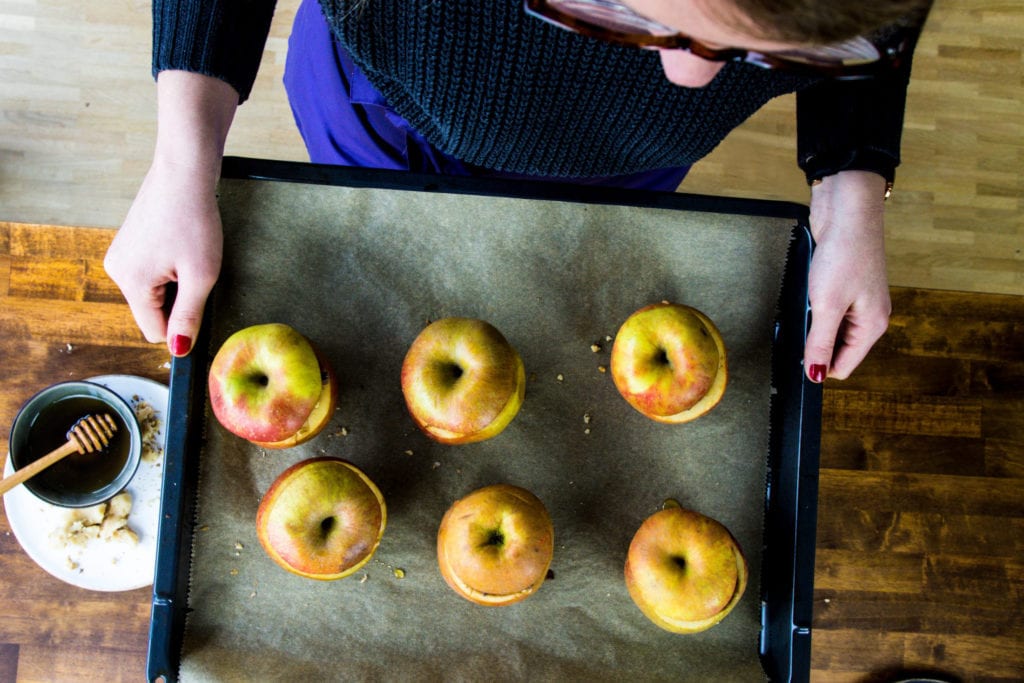 Experimentierfreudige können die Füllung der Äpfel abwandeln, wie sie wollen. Statt Walnüssen schmecken auch Mandeln oder Haselnüsse dazu, ein Hauch Orange oder Nelken zaubern noch mehr Weihnachten in die heißen Äpfel. Aber hier kommt jetzt erst einmal unsere Variante, an die ihr euch gerne akribisch halten könnt. Wir geben hier eine sichere Geschmacksgarantie.
